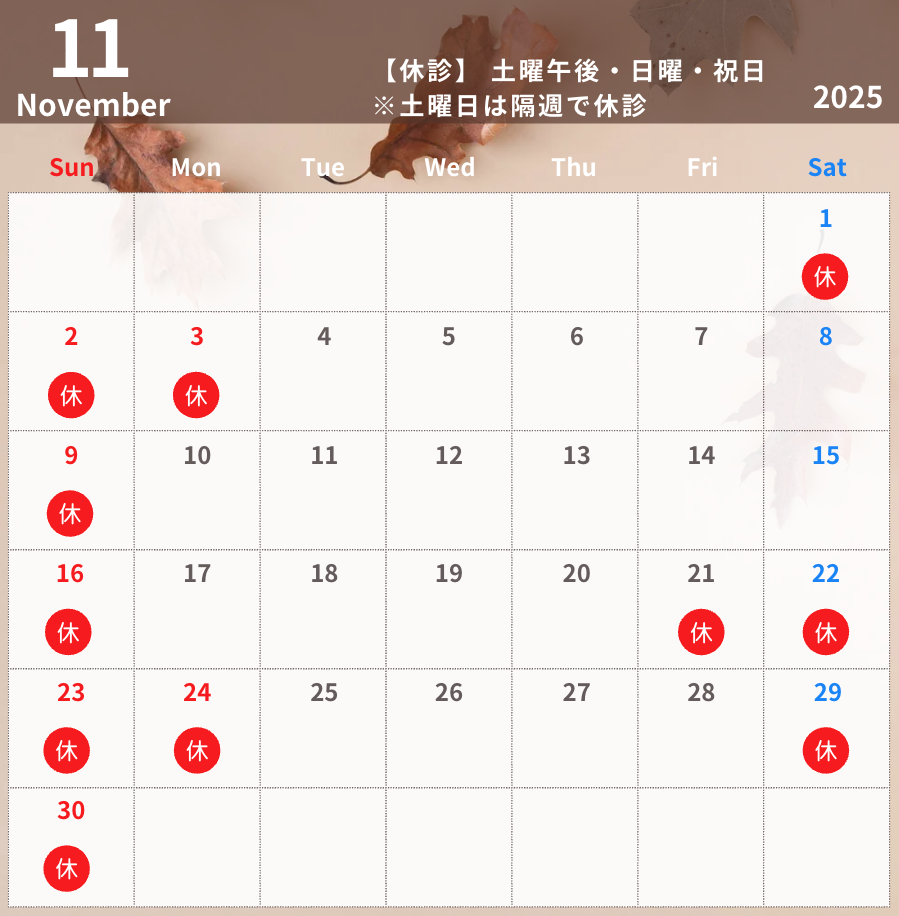 11月1日(土)、21日(金)、22日(土)、29日(土)