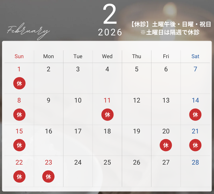 2月14日(土)、20日(金)、21日(土) は休診いたします